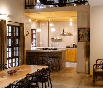 An inviting dining table sits nearby — perfect for sharing food, playing games, or enjoying a cozy evening indoors.